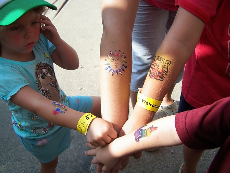 Daphne and Amy...Amy and Daphne....Showing off airbrushed tattoos....Jean's lips