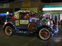 Santa ends the parade....Owen and Brendan pose by their favorite car...a Herbie