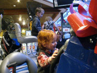 Brendan at the slot cars....Kathy and Terry....Getting candy after a picture with Santa. The kids also got coupons to eat free in the restaurant!