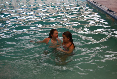 Daphne and Erin check out the waterfall....Grandma Kathy....Alex