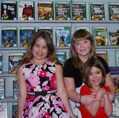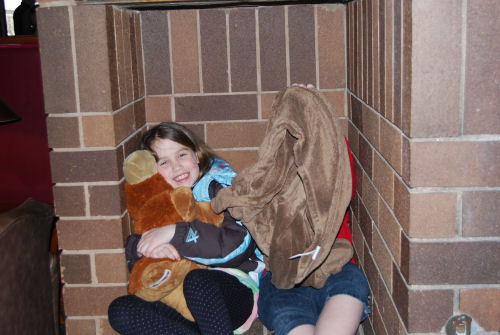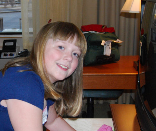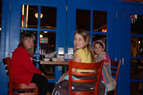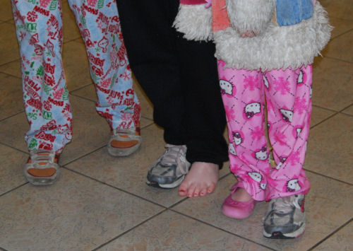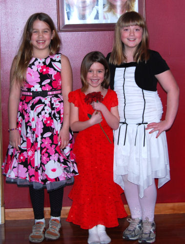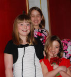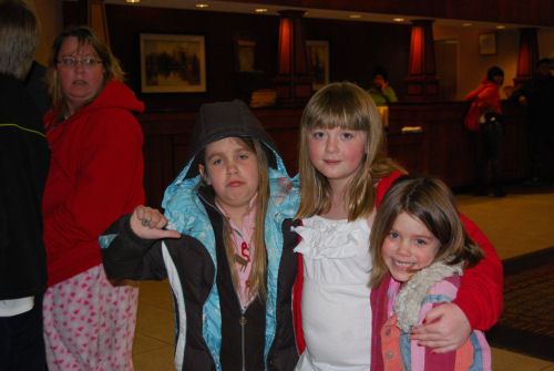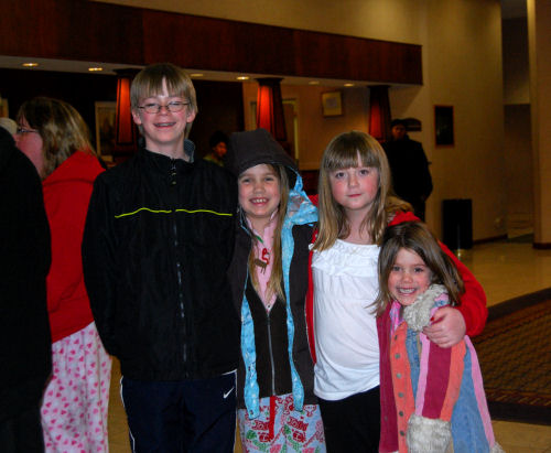 Becky and the Girls....Erin couldn't find one of her shoes so Hannah gave her one of hers....Posing in the Lobby