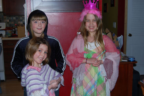 Getting dressed up to go to the video store. This tradition was started by Becky, Jean and Laura.