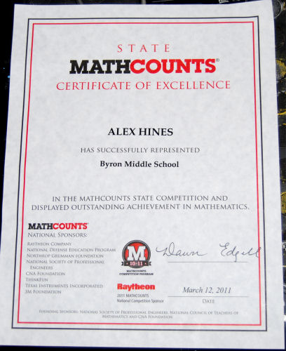 We are all very proud that Alex was one of the four participants from Byron Middle School!