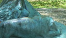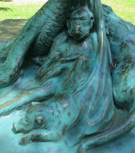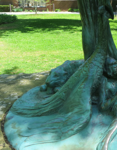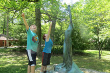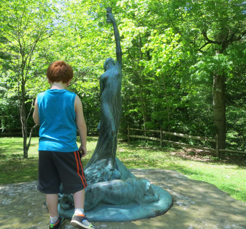 Jean and the boys....Owen posing where the statue of Juliet Strauss stood for many years