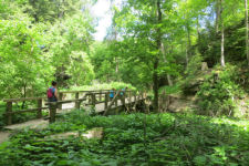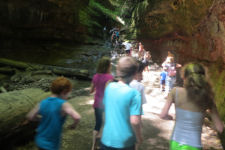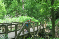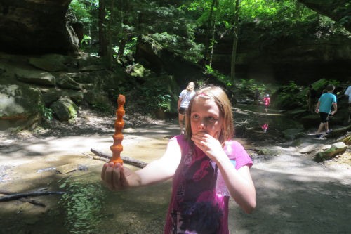 Crossing a bridge....Erin with her carrot art....Trail 3 was crowded....Jean and her shoes