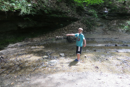 Trail 6 was not crowded....Brendan spotted something right away....Tiny fish that Brendan found