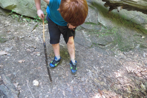 Brendan and Bubba with sticks....Owen....Owen checking his knees for scrapes (he didn't have any this time)....Owen