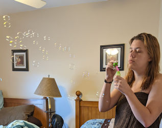 More bubbles....Kathy in her room....Monarch butterfly....The pool was used a lot