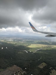 Pop-up clouds....Phone on the smallish tray....Watching a movie with shared earbuds....A little turbulence...Perfect picture of clouds and land
