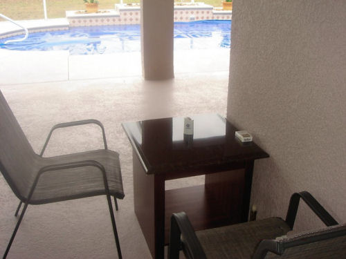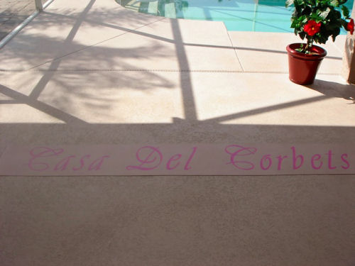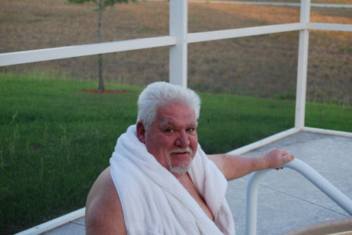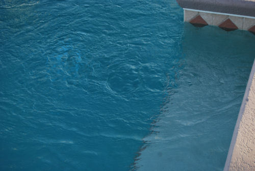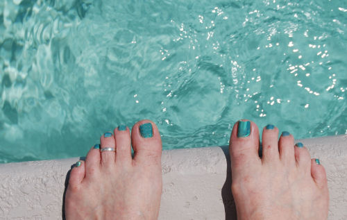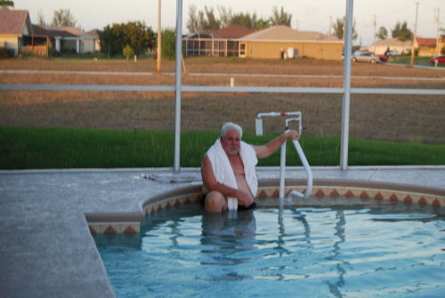 Mike....Kathy's toenail match the pool....The lighted pool at night