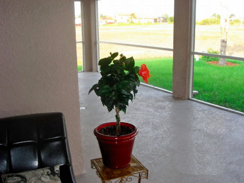 The Lanai....Mike found an egg in the ferns after a storm knocked one over