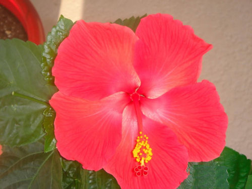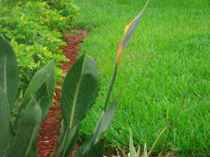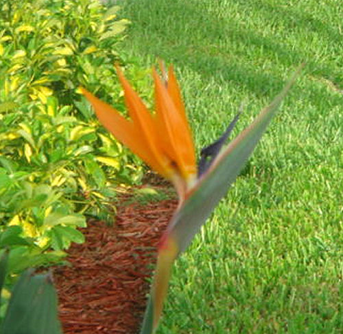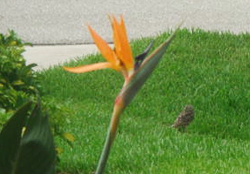 The Bird-Of-Pardise plant (to the right of the front door) bloomed