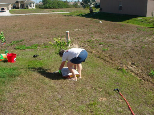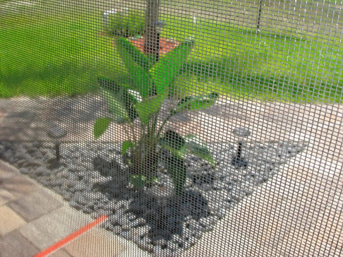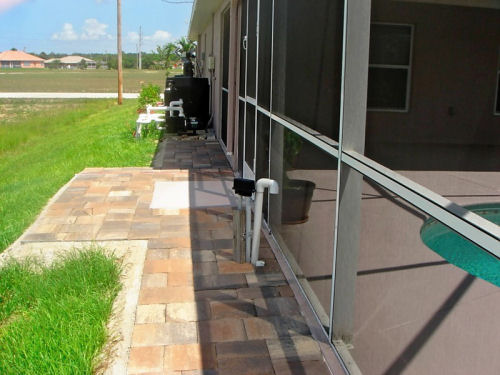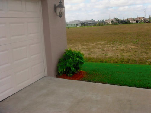 The side yard....The new walkway and triangle planting bed