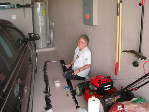 Kathy working on the sign....We did get it hung but I forgot to take a picture....It looks nice