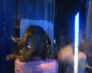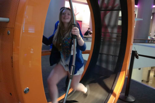 Fun with long hair in the wind tunnel....Hannah and Erin