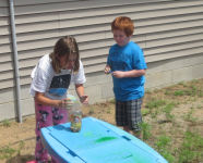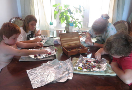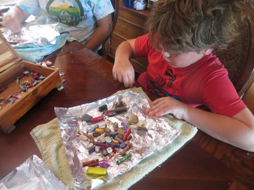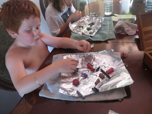 Decorating hot rocks with crayons....They all liked the way the crayons melted and blended on the rocks