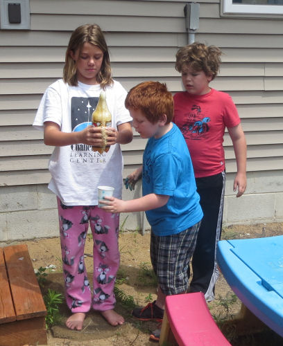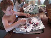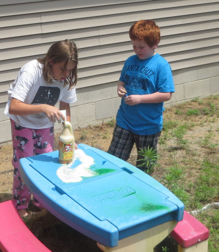 Brendan's was fine (no pic)....Erin's foamed away (she said the secret was to add a ton of dish soap)