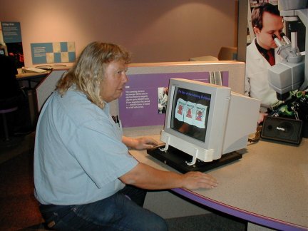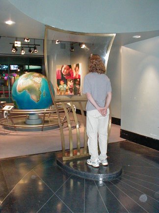 Jean and Jeff enjoyed the Whispering Gallery, Terry played a computer game, Jean and Jeff made a green tractor at the Mold-A-Rama and Terry, Jeff and Jean watched the Airplane Show from the balcony.