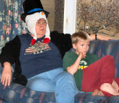 Grandma Kathy and Alex watching football....Grandpa Terry dressing Erin....Daphne