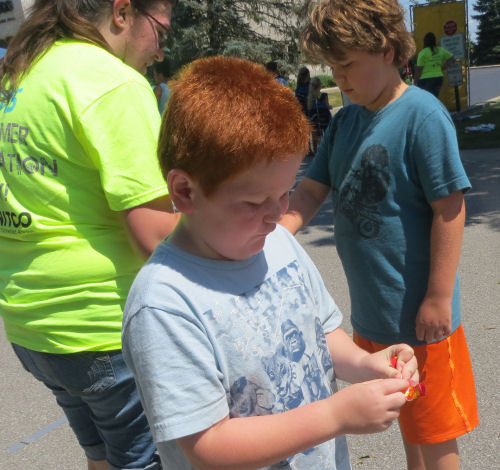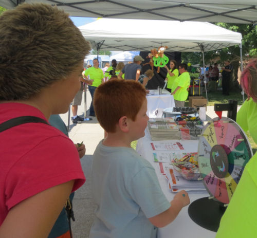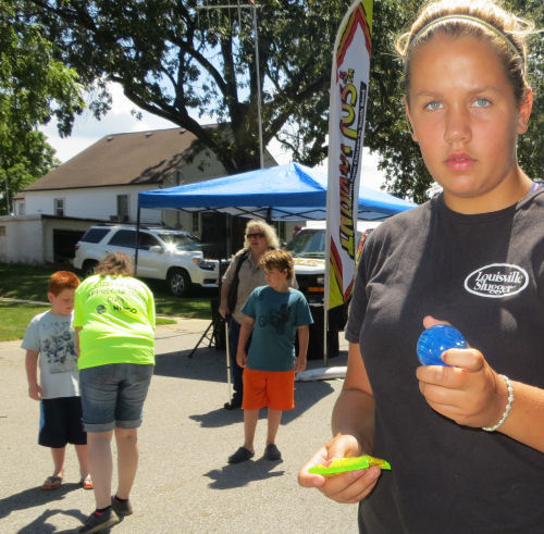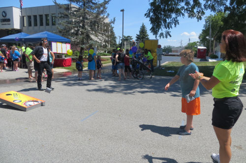 Grandpa Terry watches the cornhole game....The kids won candy and/or a ball....Spinning to win more prizes
