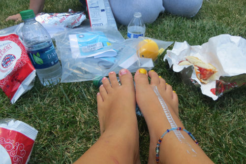 Wonderful hot dogs....Daphne's nail polish, hot dog, water and chips