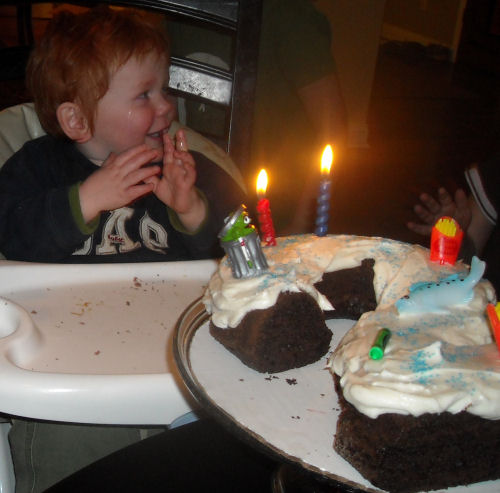 The cake....Owen eating his cake