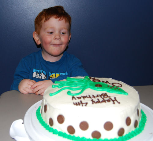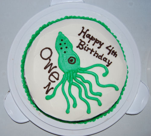 He got a green squid birthday cake!