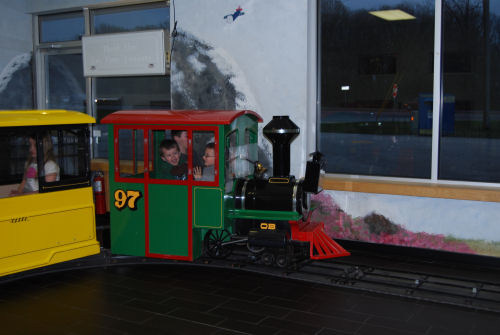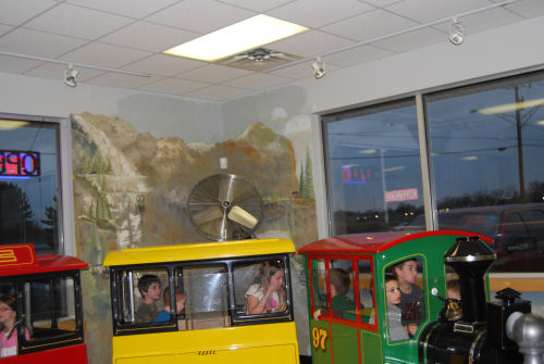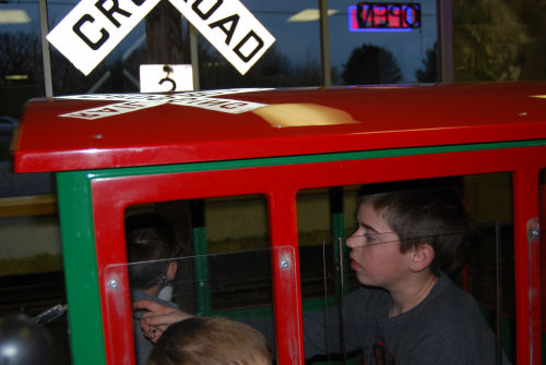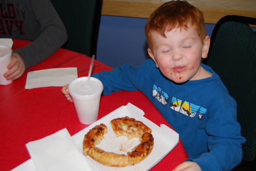 Owen and his goofy pizza crust....The train that ran around the room