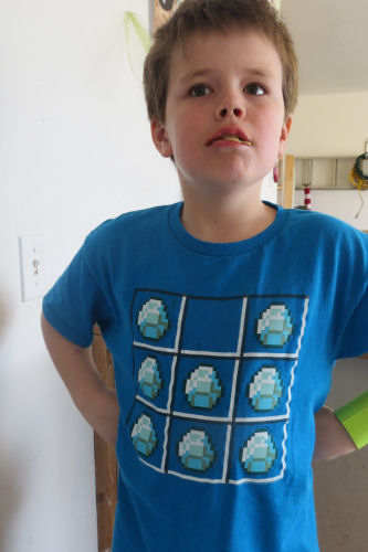 Brendan wearing his Minecraft diamond shirt....Jean wearing her Diamond earrings