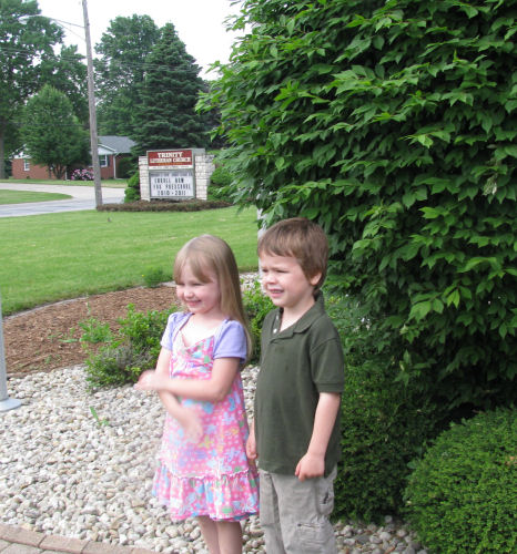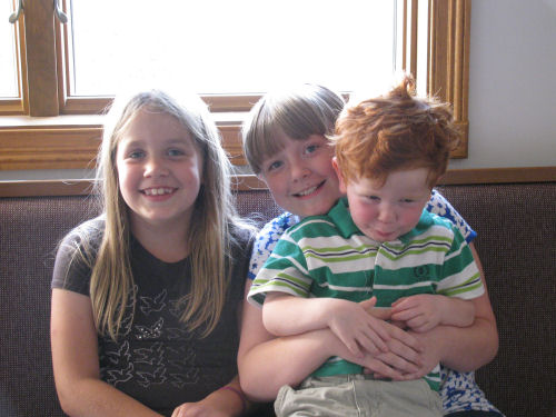 Brendan posing for Grandma Kathy (note the tilted head)....Brendan and Abigail
