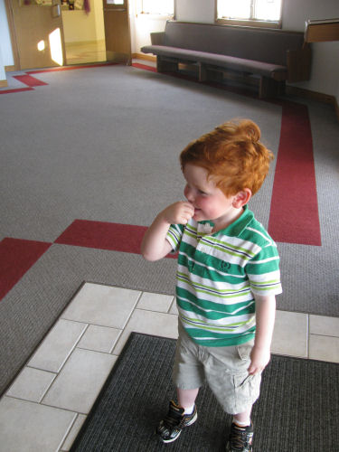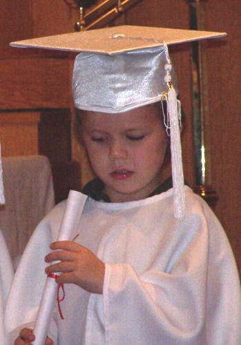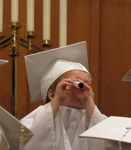 Now let's just say you are a 5-year old boy who just received a neat rolled up piece of paper and you have to go and stand while other students get their pieces of paper. What to do? What to do?