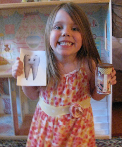 I told that to my dental hygienist Beth and she sent me home with a gold tooth for Brendan.