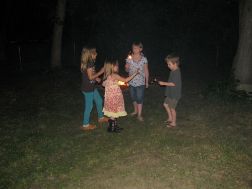 Sparklers in the back yard