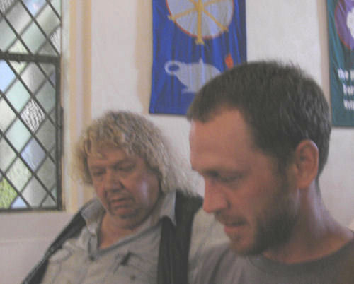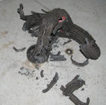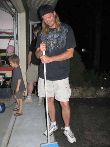 Bill, Alex, Hannah, Jean, Erin and Brendan....The ash sculpture....Dave sweeping away the ash