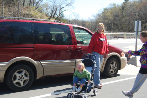 Grandma Kathy in her Elmo shirt....Laura and Grandma Kathy....Heading back to the van