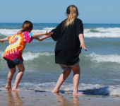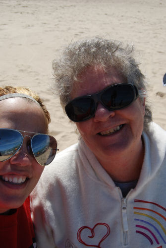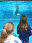 Daphne and Erin watch a friendly sea lion