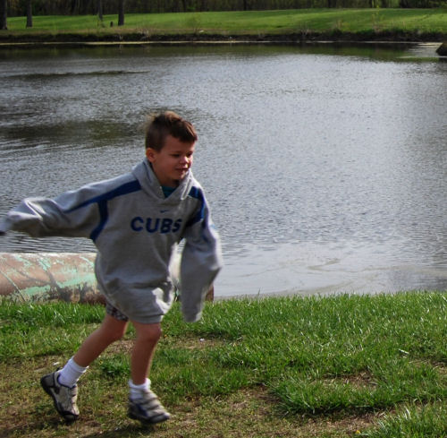On the steps....Crossing the footbridge....Running a lot