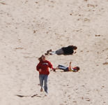 Laura ran down but Daphne and Erin rolled....Erin enjoys some water