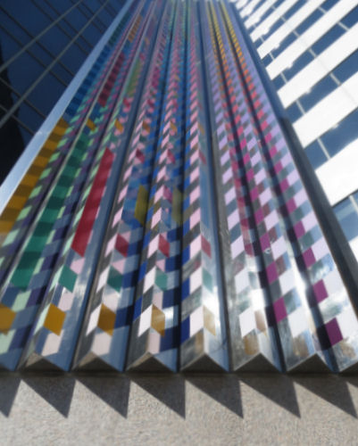 Look! That crane is installing a panel on that building!