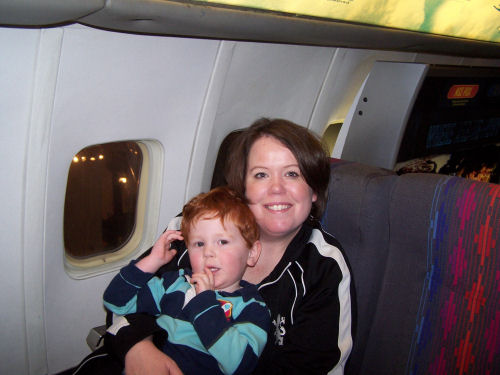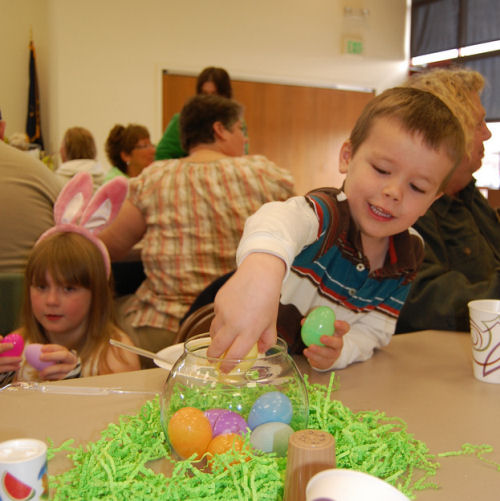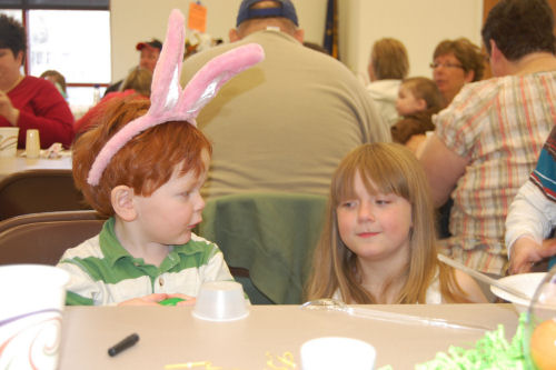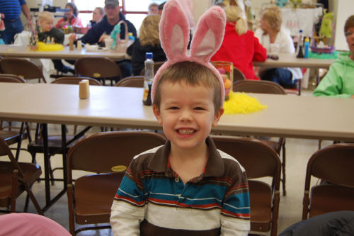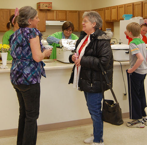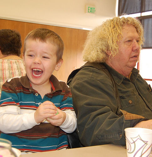 Roxanna Hanford and Kathy talk about Grandkids while Alex gets some food...Brendan enjoying the breakfast