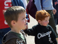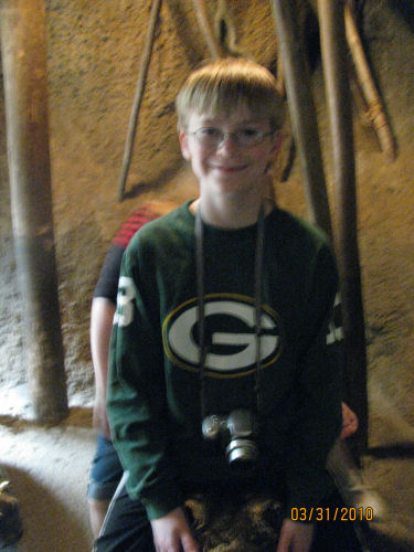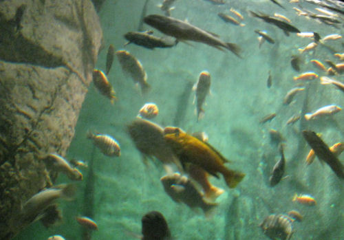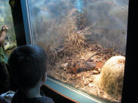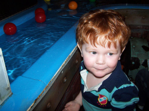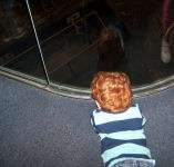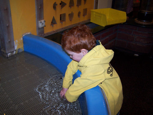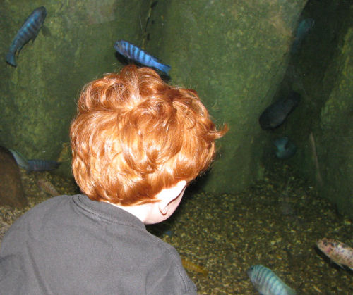 Owen checks out the fish....Alex had the audacity to wear his Green Bay jersey to Chicago