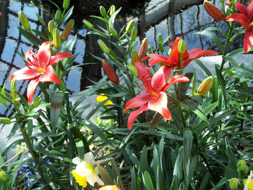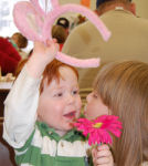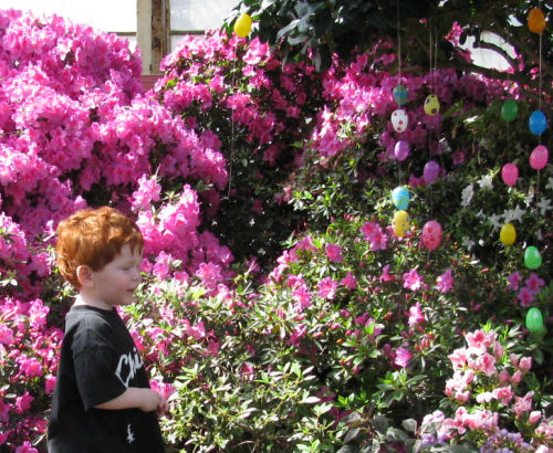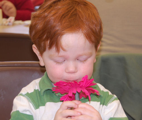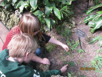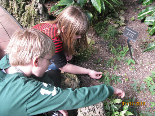Alex and Hannah check out the sensitive plant...Owen liked this flower display so much he became a part of it!