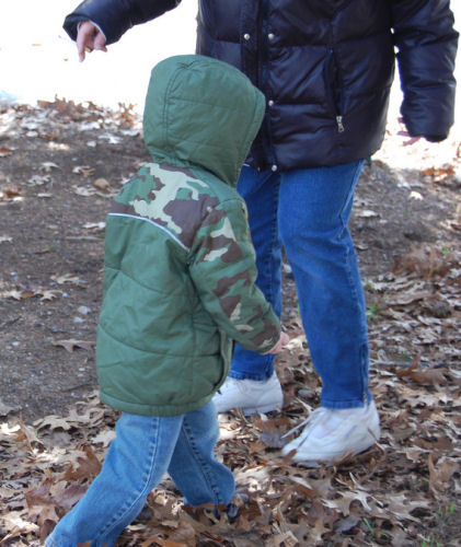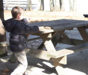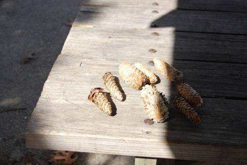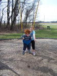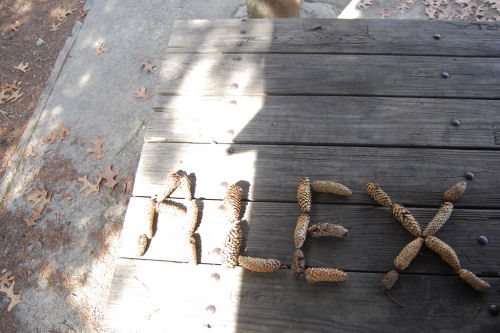 Brendan started collecting pine cones....Alex encouraged him and then spelled out his name