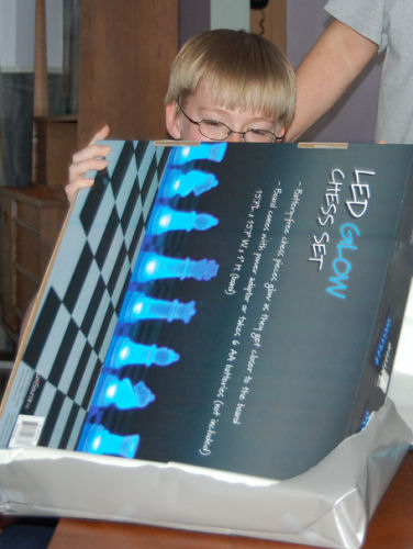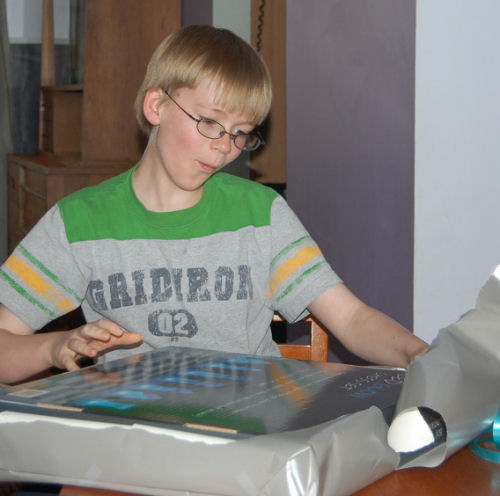 Hannah went on her shopping spree so Alex opened his gift from Grandma Kathy, Grandpa Terry and the Lahms