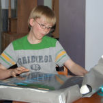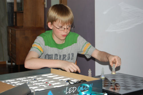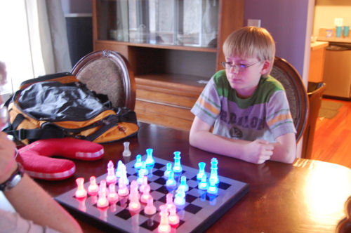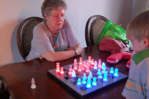 The first game. Alex beat Grandma Kathy five out of six games. Notice that Kathy and Alex have the exact same poses!