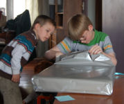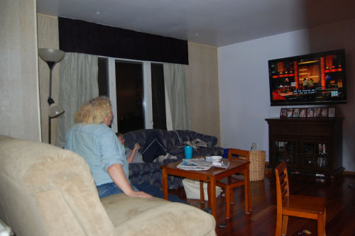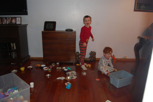Brendan and Owen playing....Jack in a house Hannah built for him....Grandpa Terry and Alex watching Deal or No Deal