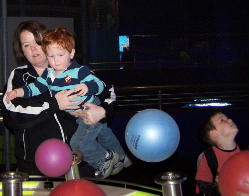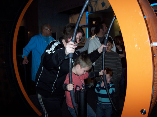 Cranks....The Tesla Coil created lightning....so cool. Owen (and Brendan) did not like it