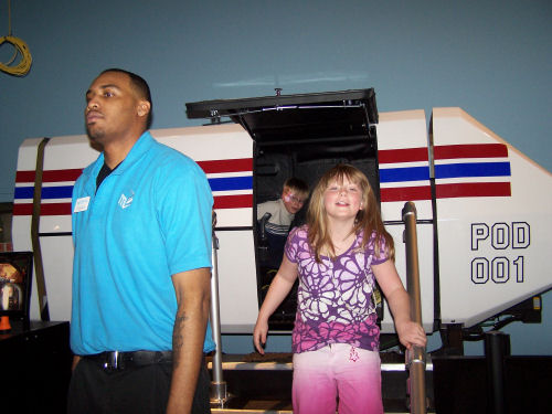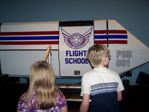 Hannah and Alex decided to attend Flight School.....And there was a monitor where we could watch them in the pod!
