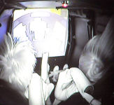 They are flying upside down....Notice Hannah's hair!....Emerging from the pod....Happy Hannah and Alex