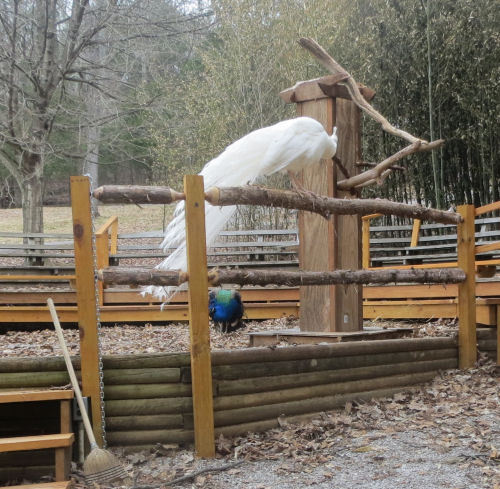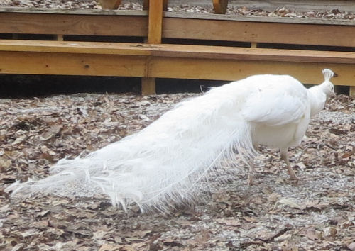 White peacocks are not albinos; they have a genetic mutation that is known as Leucism, which causes the lack of pigments in the plumage. Albino animals and birds have a complete lack of color and red or pink eyes while White peafowl have blue eyes. The white color appears in other domestically bred peafowl but in different quantities. Chicks are born yellow and become white as they mature, according to the Peafowl Varieties Database.